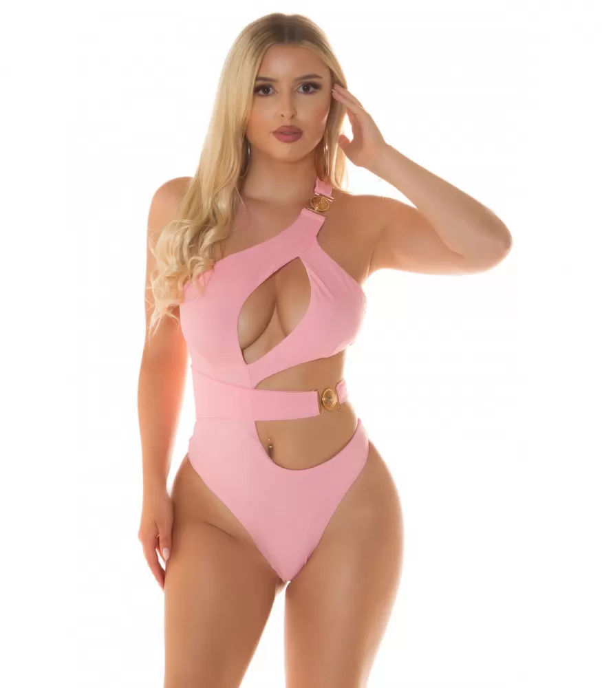 Koucla vaaleanpunainen cut out -monokini koristeilla