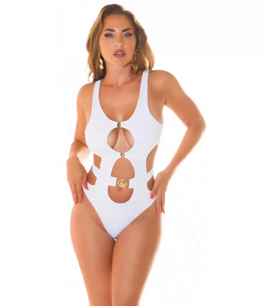 Koucla valkoinen cut out -uimapuku koristeilla