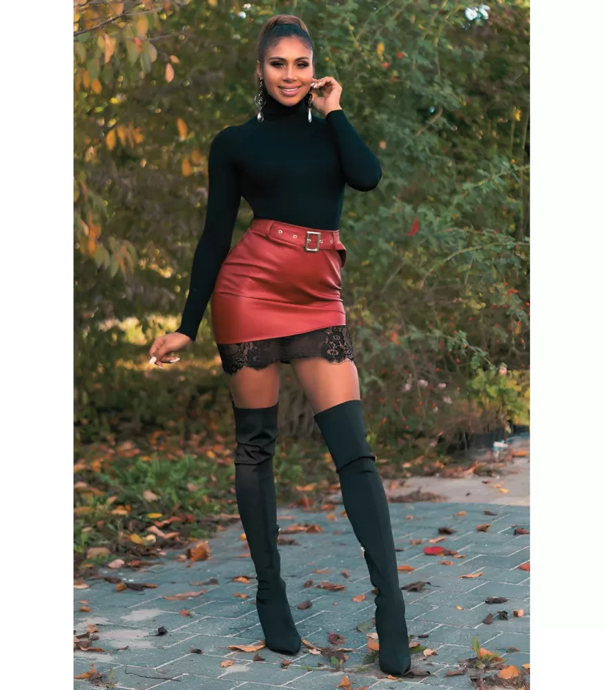 Lovely and well-fitting leather skirt with a belt. A good-feeling match. I highly recommend :)