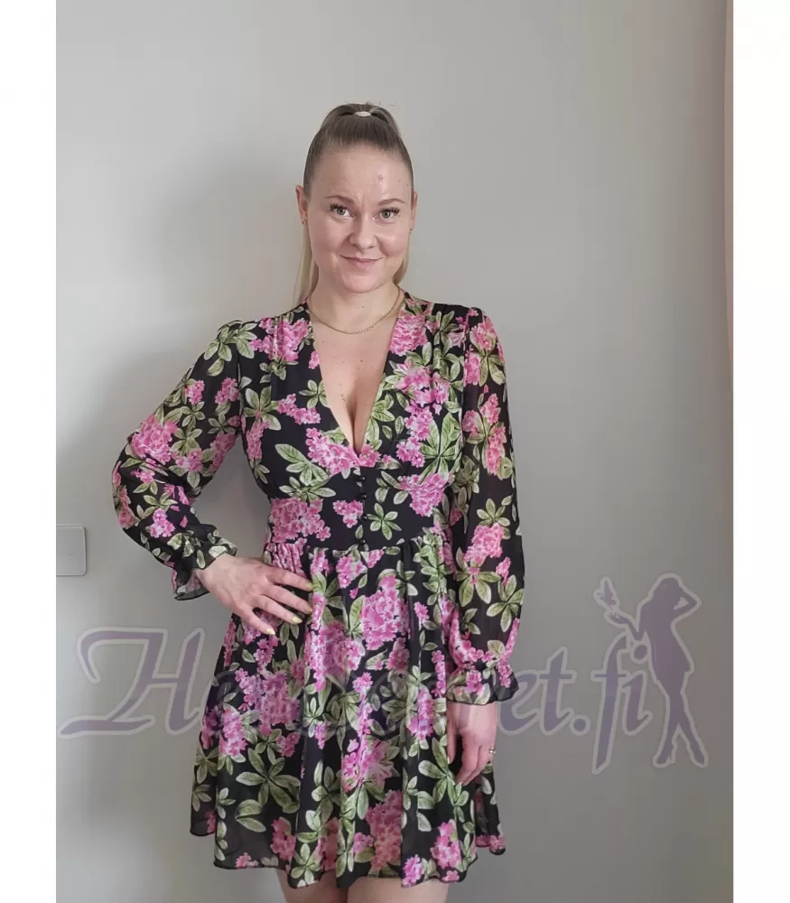 Elle Style Juliette musta kukkakuvioinen mekko helminapeilla