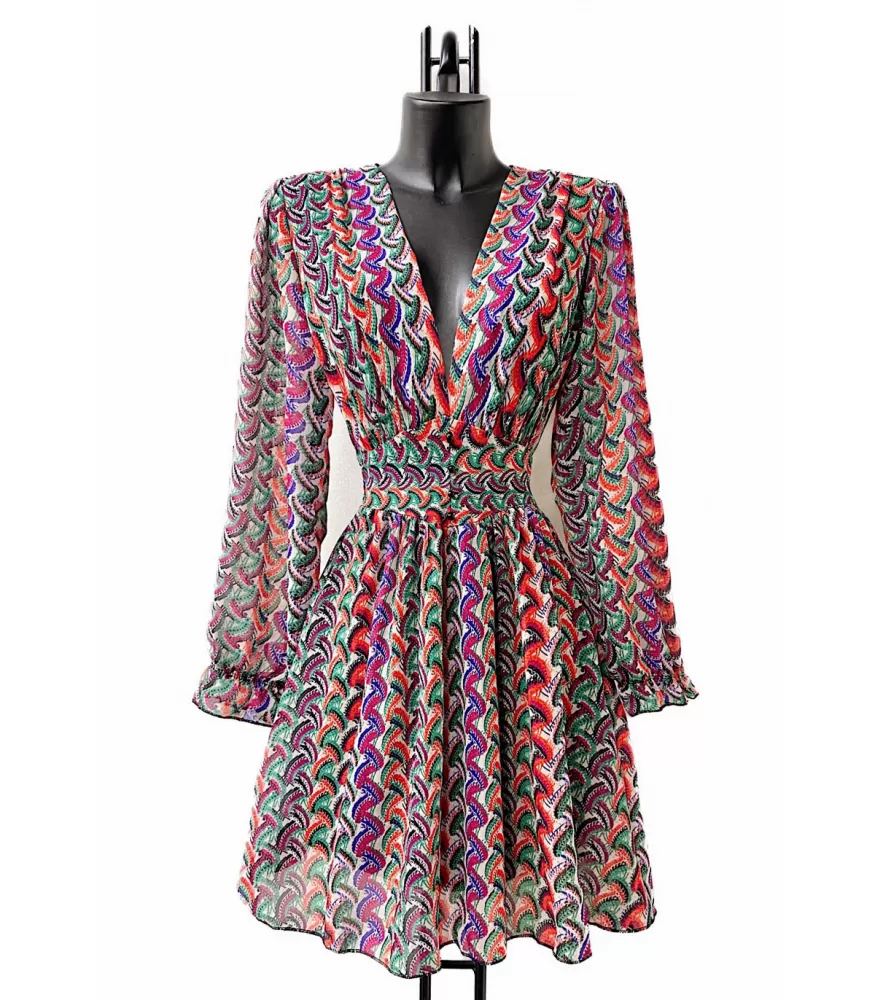 Elle Style Juliette värikäs printtikuvioinen mekko helminapeilla