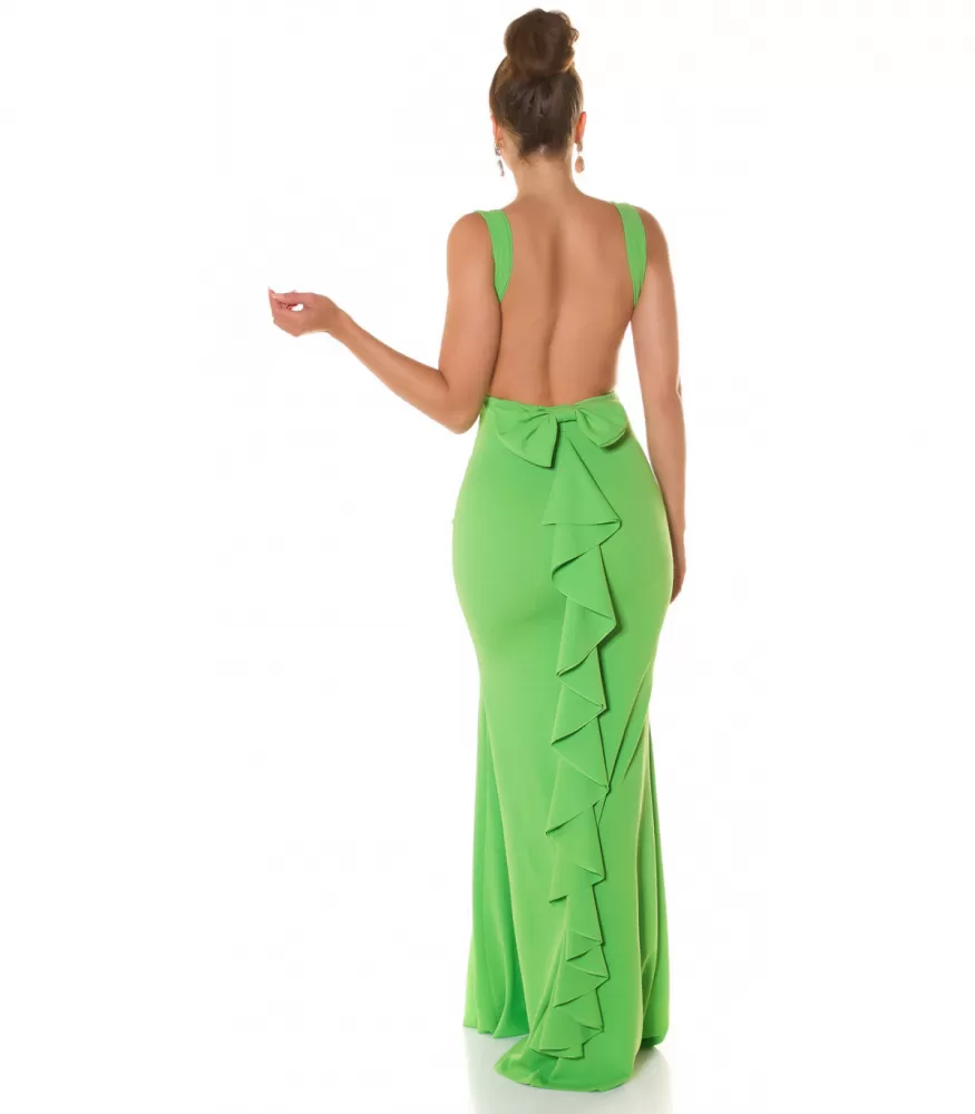 Koucla vihreä pitkä juhlamekko rusettiröyhelöllä