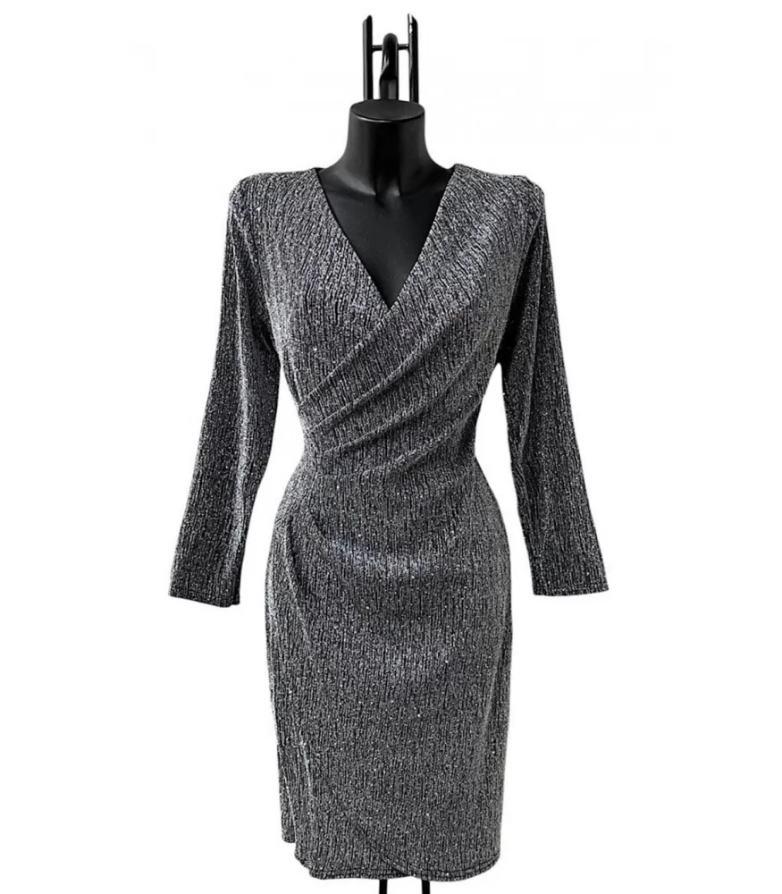 Shibelle hopeinen strassikoristeinen wrap-look v-mekko