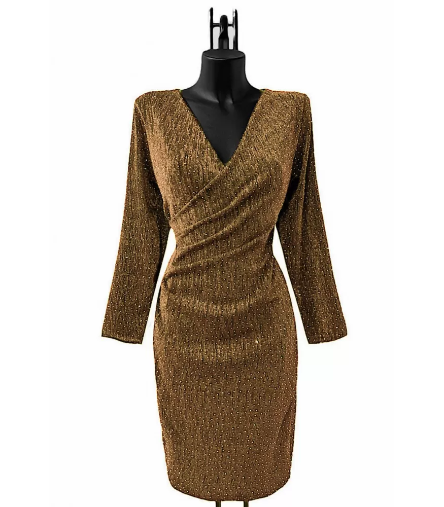 Shibelle kultainen strassikoristeinen wrap-look v-mekko