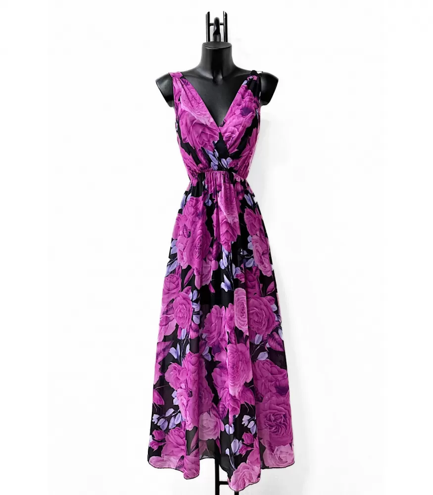 Elle Style Kristy violetti ruusukuvioinen maksimekko