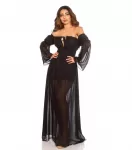 Koralli pitkähihainen off-shoulder mesh-maksimekko