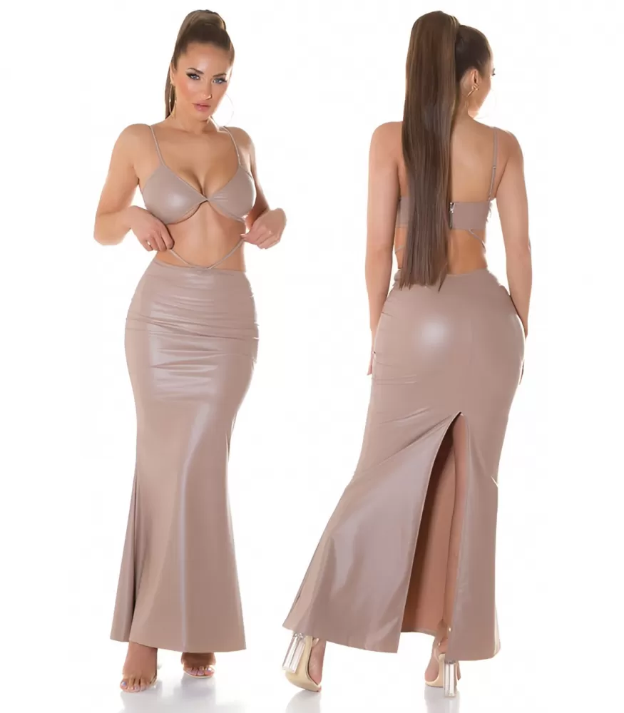 Koucla cappuccino tekonahkainen maksimekko XL-halkiolla