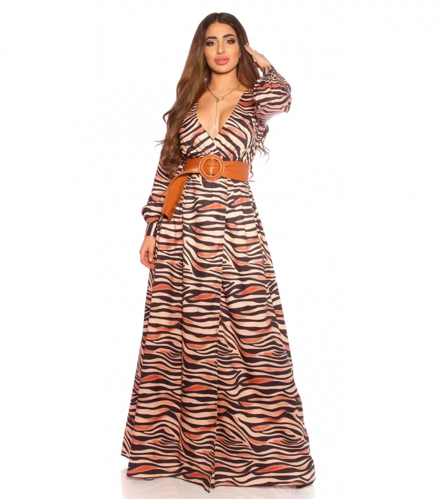 Koucla pitkähihainen seeprakuvioinen v-maksimekko halkiolla