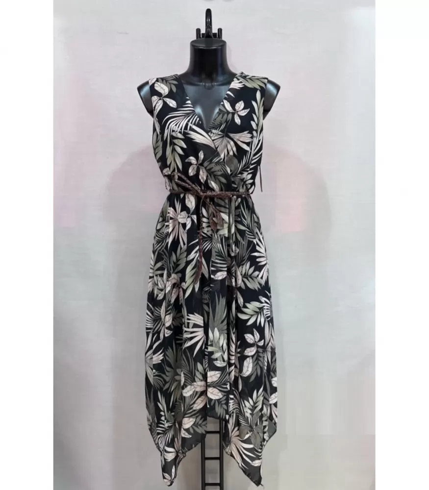 Mily khaki epäsymmetrinen printtimekko vyöllä