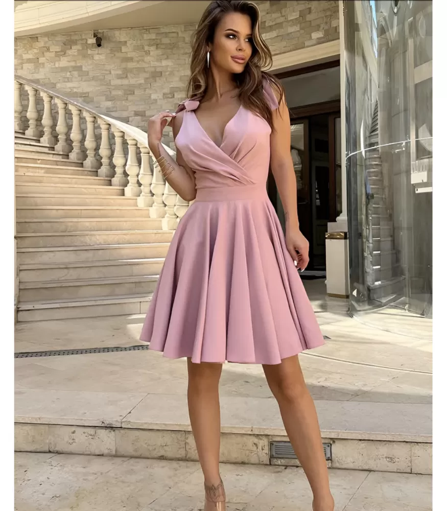 Rosy Days vaaleanpunainen v-skater-mekko rusettiolkaimilla