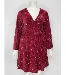 Lilie viininpunainen v-paljettimekko vyöllä (plus size)