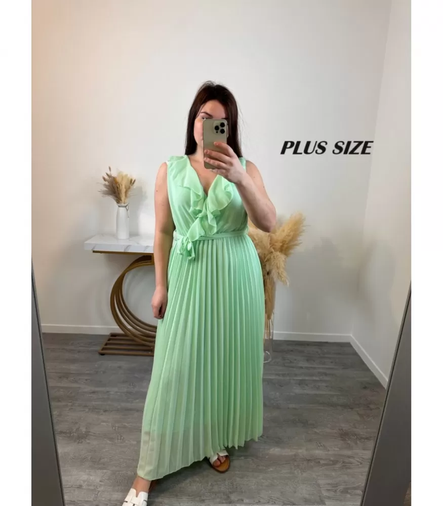 Mily vaaleanvihreä pitkä vekkimekko röyhelöllä (plus size)