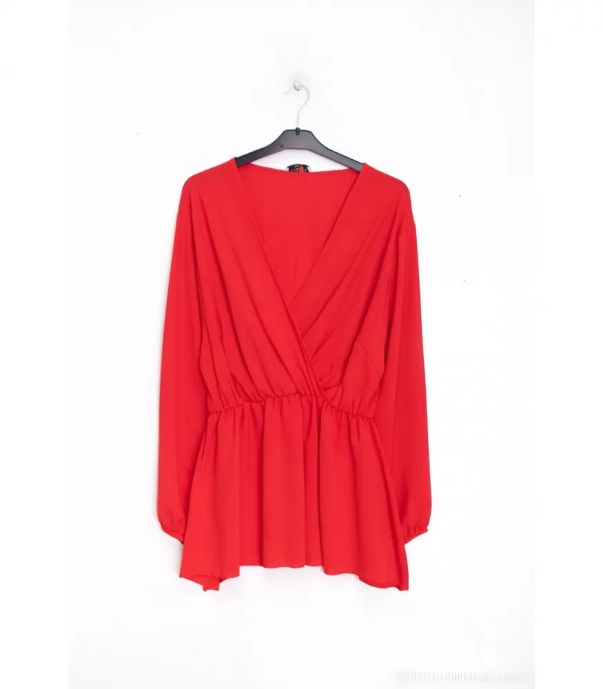 Kazaka punainen pitkähihainen wrap-look v-paita (plus size)