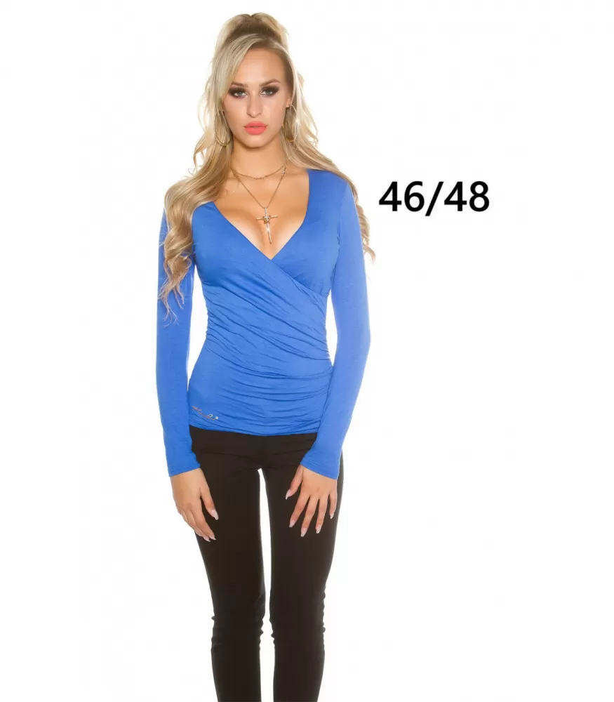 Koucla sininen pitkähihainen wrap-look v-paita (plus size)