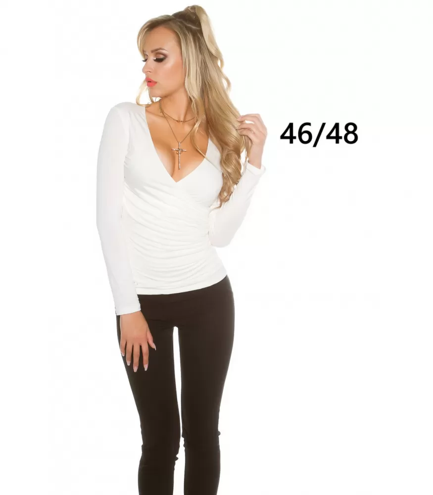 Koucla valkoinen pitkähihainen wrap-look v-paita (plus size)