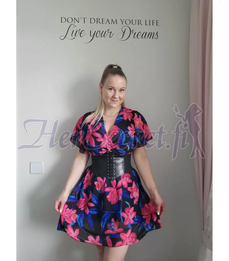 Svart midjebälte i konstläder fram. Kardborreknäppning på baksidan.